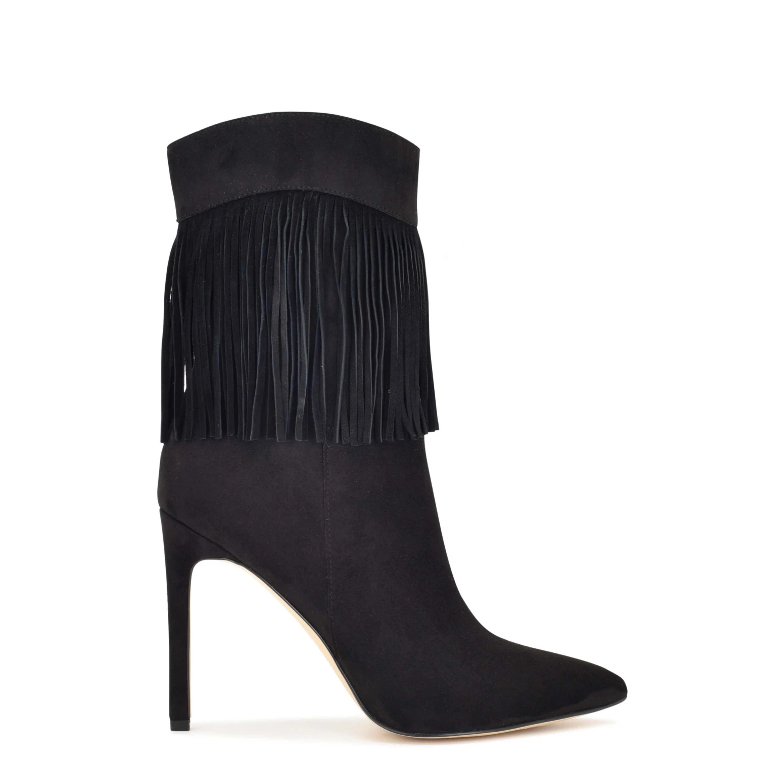 Stay stylish in the Tries booties. Featuring a fringe trim adding Western inspiration to a pointy-toe bootie lifted by a sky high stiletto.